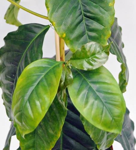 Carencias de calcio se notan más en cafetos pequeños que tienen un sistema radicular poco desarrollado. Como el calcio es un elemento muy inmóvil, las deficiencias aparecen primero en el crecimiento nuevo. La deficiencia de boro causa una clorosis similar. Normalmente las deficiencias de Ca y B están relacionadas.