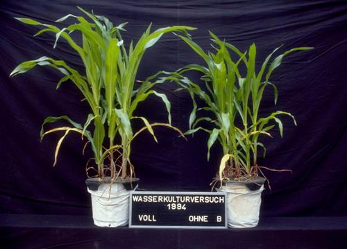 Deficiencia de boro vs plantas sanas empeorado por